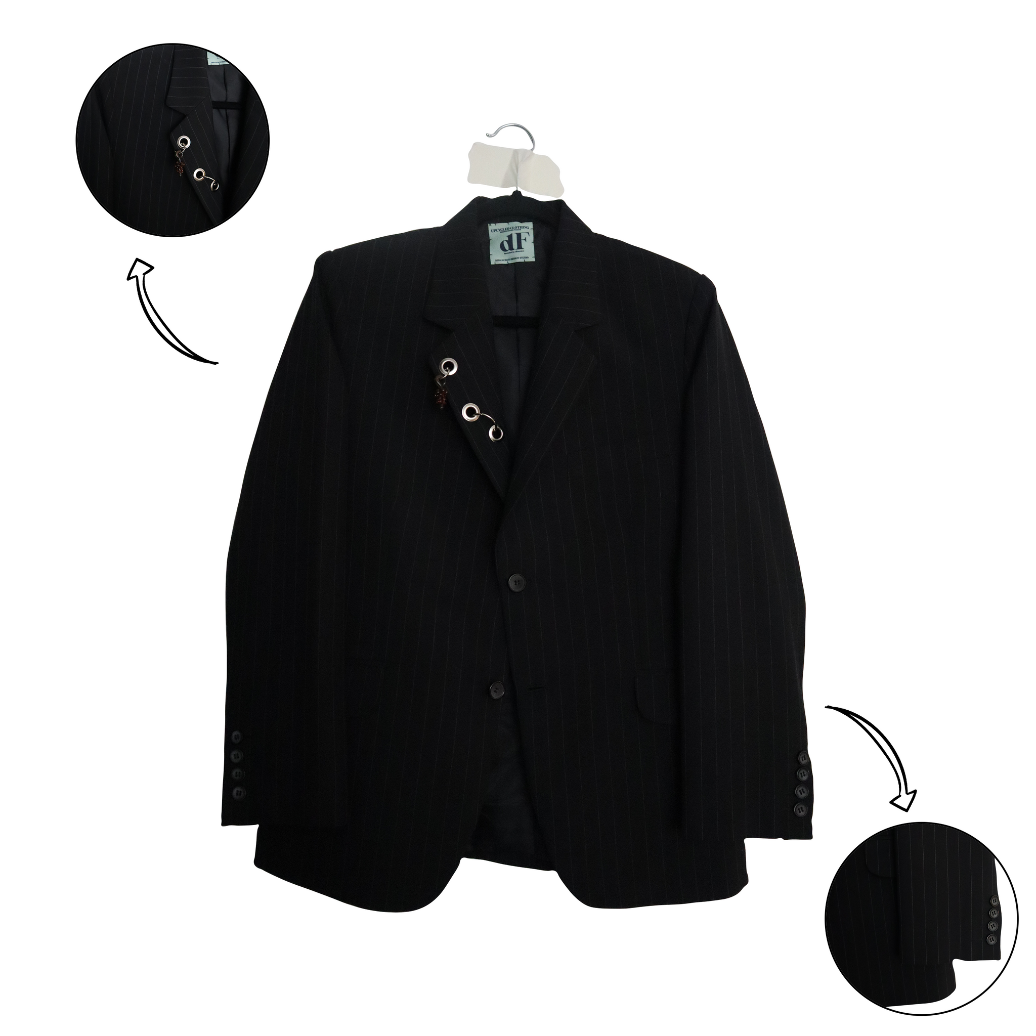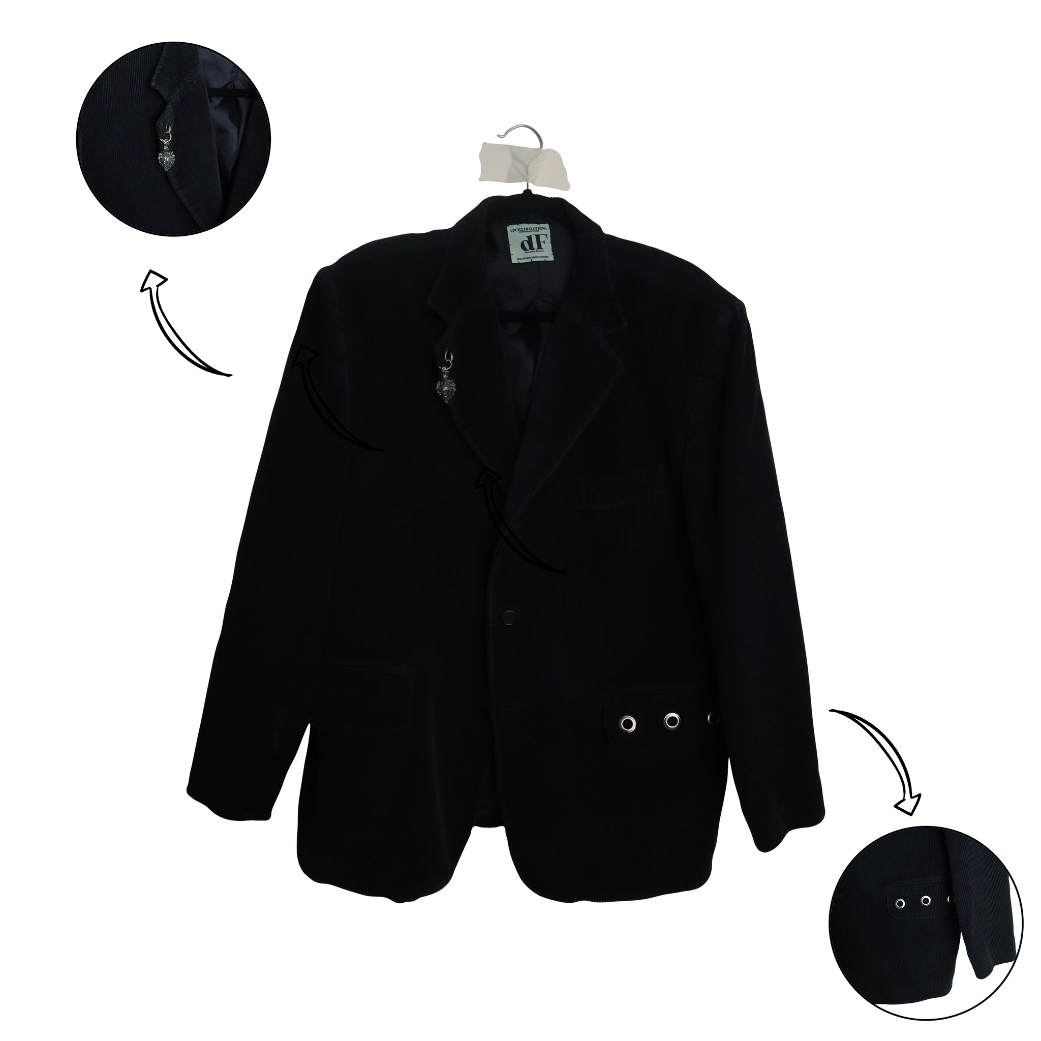 Presentamos nuestra primera prenda: "el upcycled blazer"El upcycling no se trata solo de reciclar materiales—se trata de darles nueva vida convirtiéndolos en algo mejor y más único. Para darle un toque divertido, incluimos dijes frutales que hacen la prenda aún más cool y alegre.